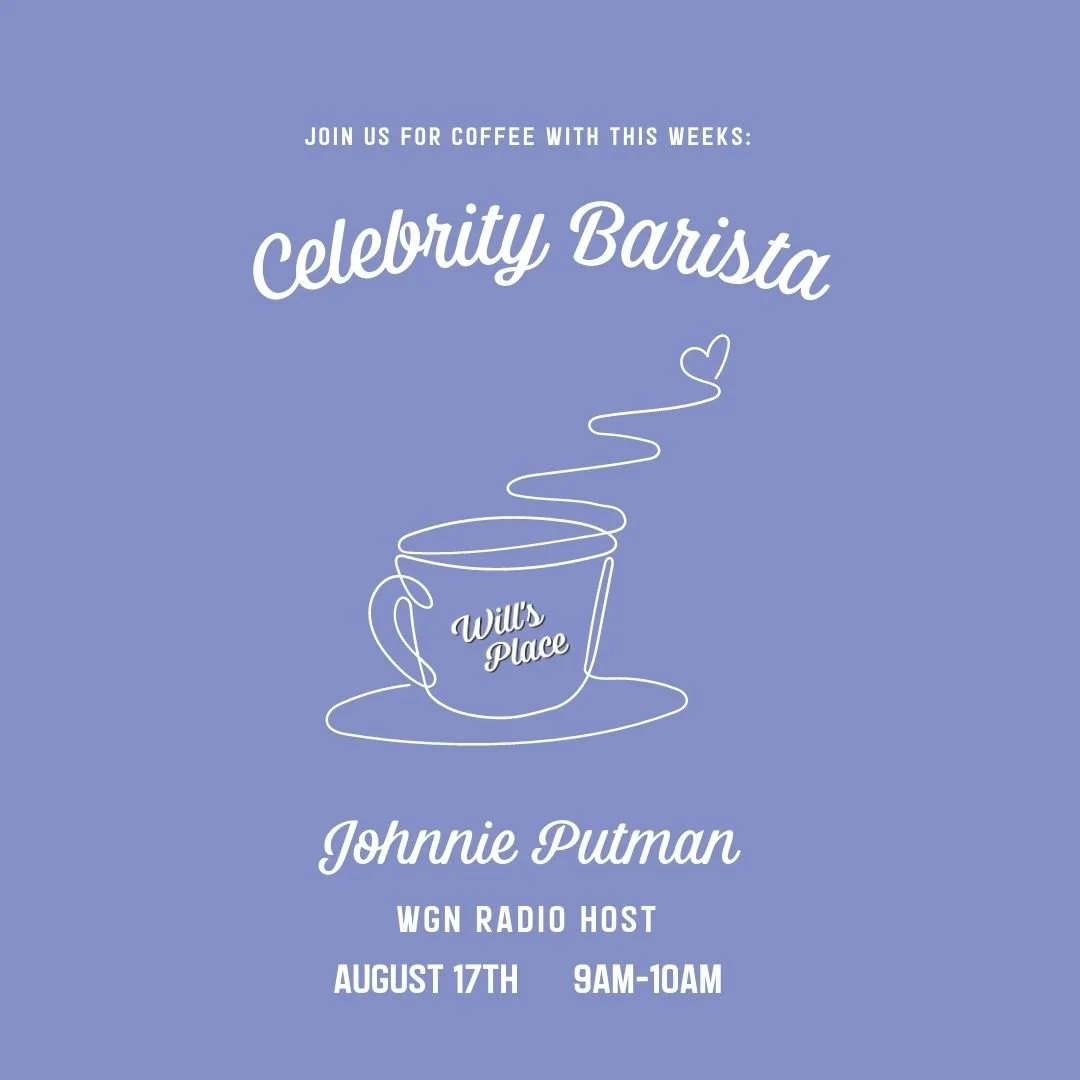 Celebrity Barista: Johnnie Putman Thursday, August 17, 2023 9:00 AM 10:00 AM Wills Place Skokie 7927 Lincoln Avenue Skokie, IL, 60077 United States (map) Google Calendar ICS Join us on Thursday, August 17th for our visiting Celebrity Barista! Joining us to serve up some delicious Dark Matter Coffee from 9am- 10am is WGN Radio Host Jonnnie Putman!